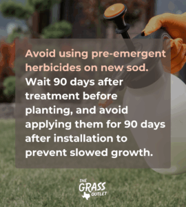 Tenga en cuenta que nunca deben aplicarse herbicidas pre-emergentes al césped recién plantado. Si ha tratado el suelo con pre-emergentes, deberá esperar 90 días antes de plantar el césped, a menos que se indique lo contrario en la etiqueta. Del mismo modo, los pre-emergentes no deben aplicarse durante los 90 días posteriores a la plantación.