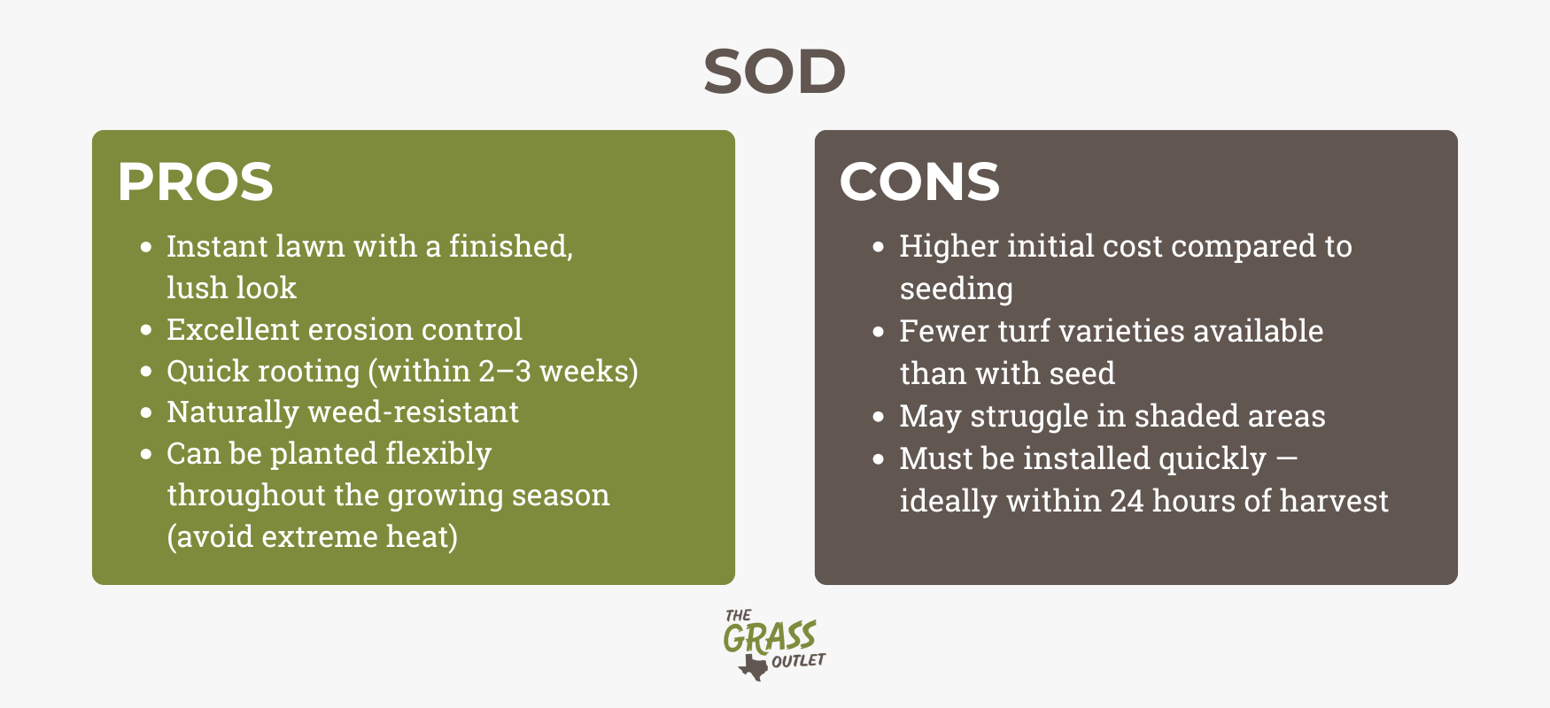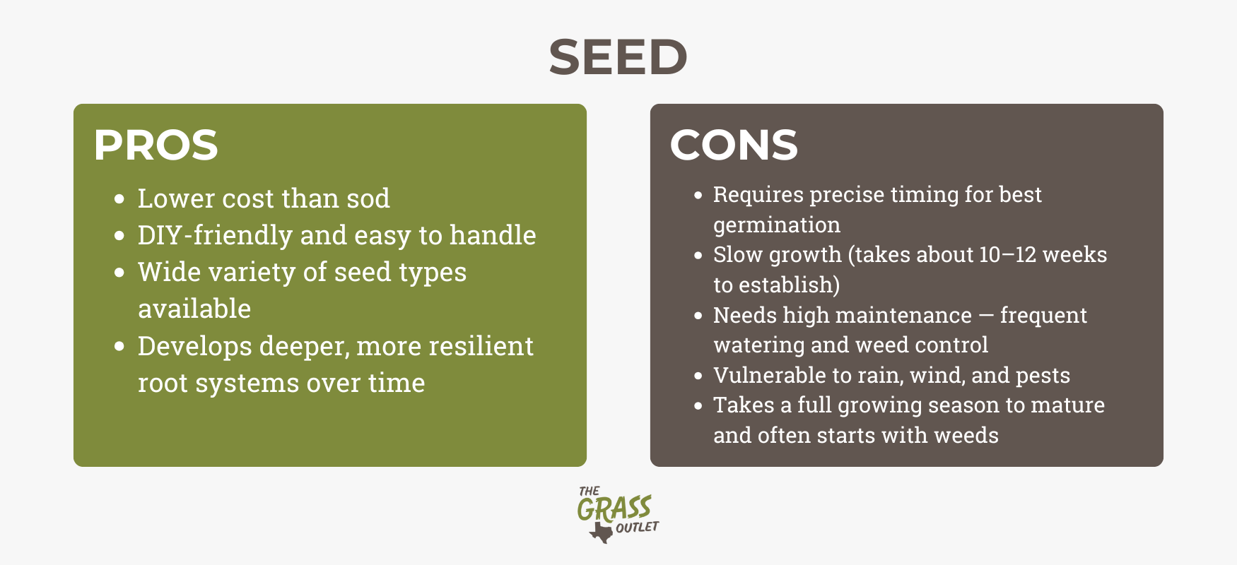 Los pros y los contras del césped y las semillas dependen sobre todo de dónde vivas, de la extensión de terreno que quieras cubrir y de lo que te quieras gastar. La cuestión más importante es si puedes aceptar algo que no sea perfecto. Si no, opte por un profesional. The Grass Outlet.