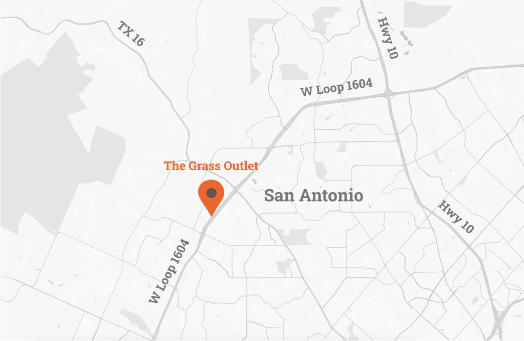 Visit our storefront location in San Antonio, where we keep select varieties of grass in stock daily! Contact us to place an order in advance to pick up grass: