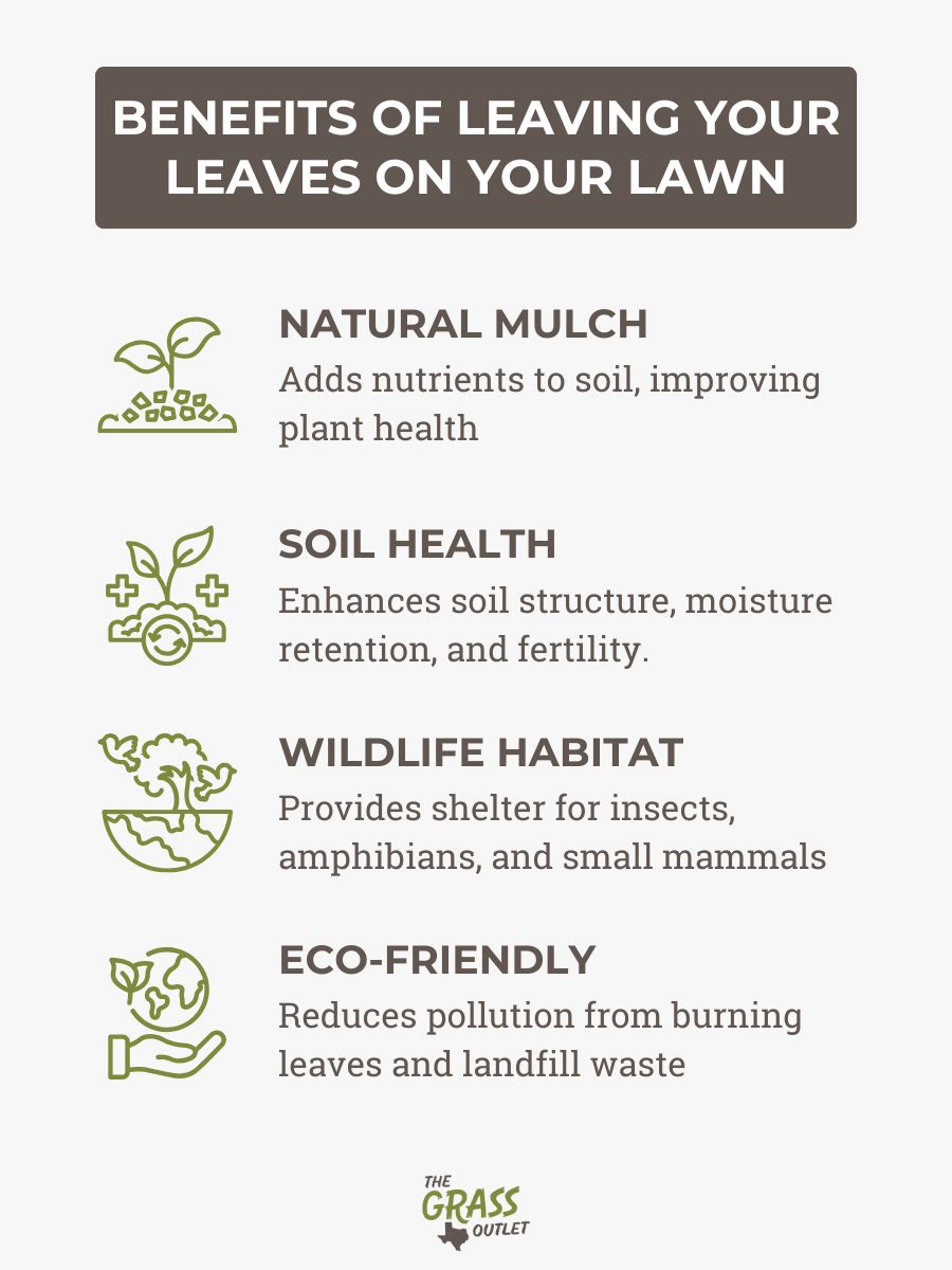 Leaves naturally break down, adding valuable nutrients back into the soil, which can help your lawn and plants thrive. When leaves decompose, they return nutrients to the soil, naturally fertilizing plants and trees.