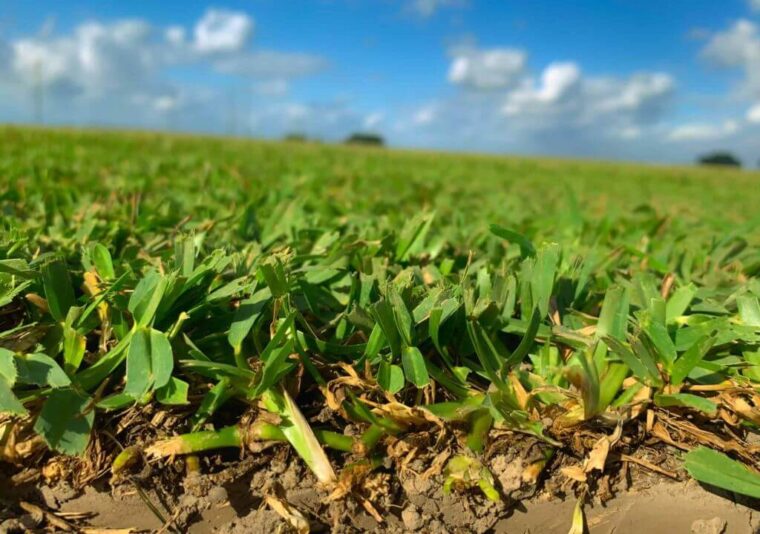 Our journey with the Grass Outlet began in July when I ordered 4 pallets of Texas Native St. Augustine. Upon arrival it looked healthy and I had no reason to question it that day. A few pieces on top were dry from transportation. We went about installing it immediately. By late morning, we were about done and began watering it in per the sod care guide. The first few days all seemed fine, but within a week, we noticed something wasn’t right. We had prepped the areas well, and followed the installation and care instructions to a tee, so I knew that there wasn’t anything I had done wrong. I knew to reach out to the company as soon as I noticed something.